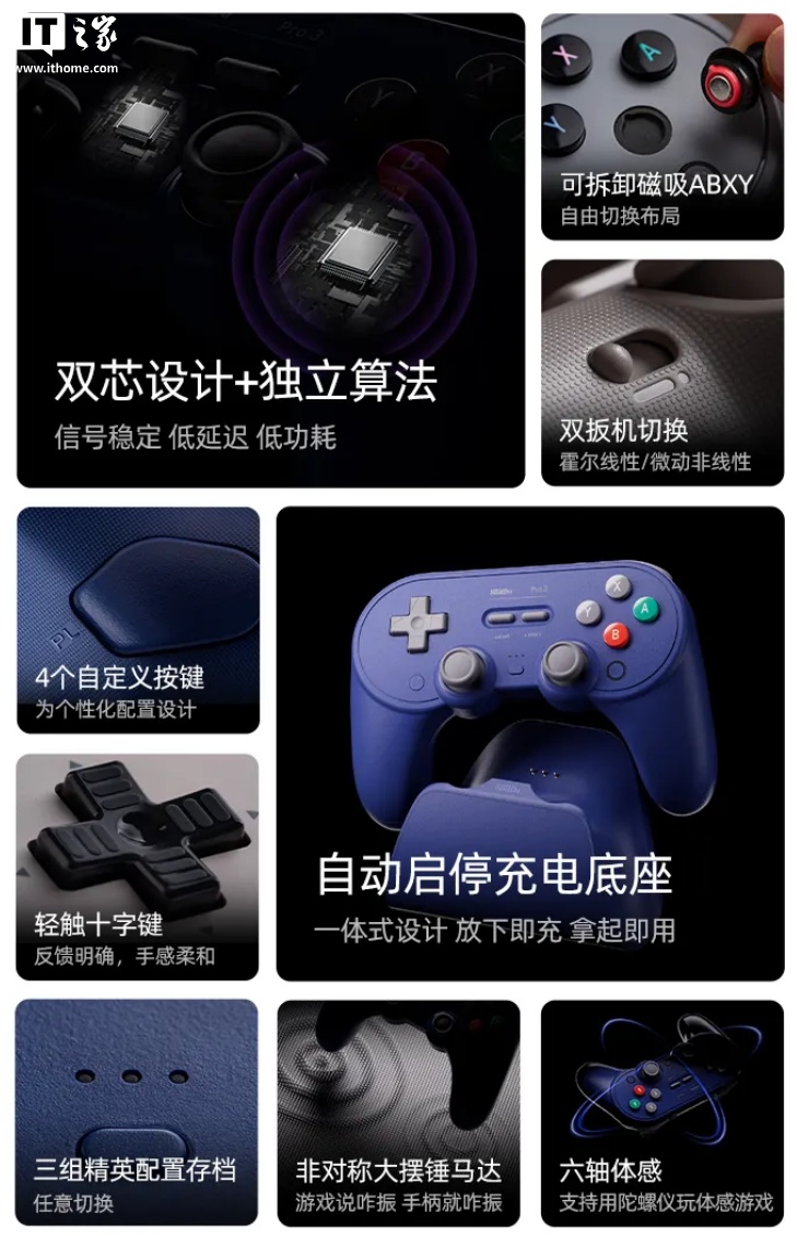 八位堂复古旗舰 Pro 3 蓝牙手柄可选多个复古配色,IT之家附参数表: