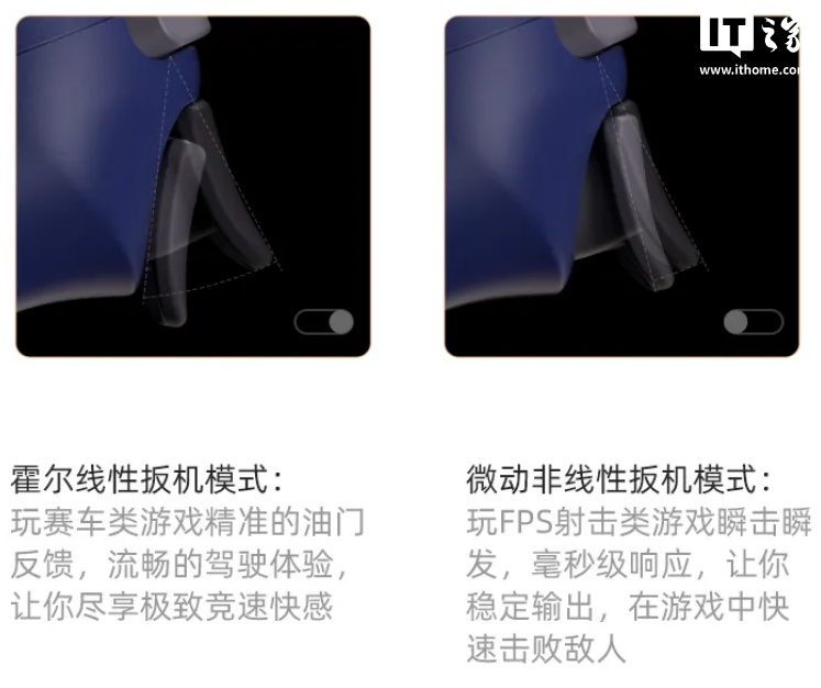 该手柄采用双芯设计 + 独立算法(主控芯片 + 摇杆独立芯片),支持霍尔线性 / 微动非线性双扳机切换,