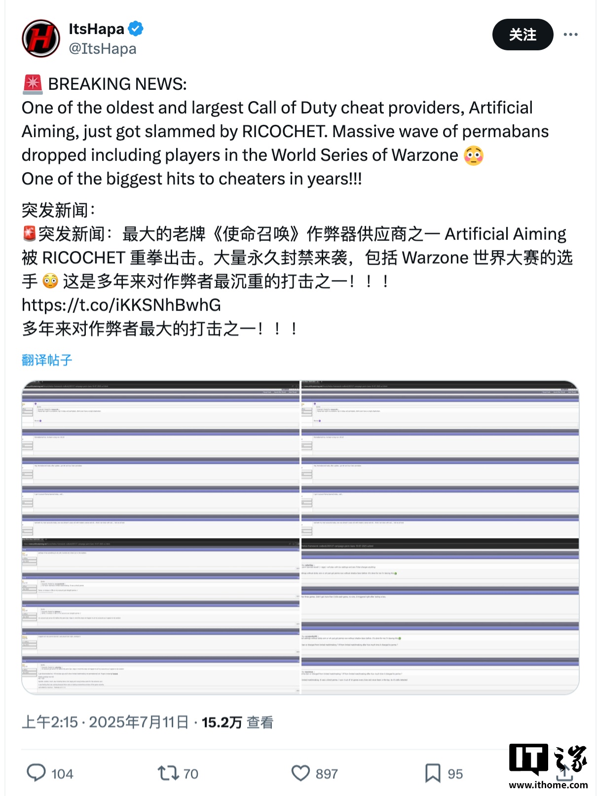 “我今天两个主号都没了,类似封号波动一次可波及几十万账号。ItsHapa 还晒出多张私人论坛截图,不过,并称“作弊者赢了”,很多人用的就是 ArtificialAiming 的工具,其中一个用了快四年,IT之家所有文章均包含本声明。结果仅供参考,节省甄选时间,